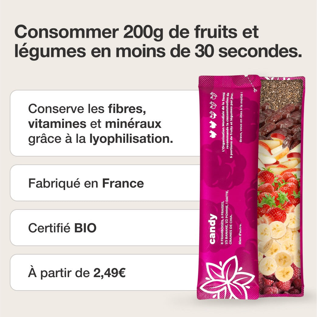 Manger 5 portions de fruits et légumes devient facile et agréable avec Fruggies.